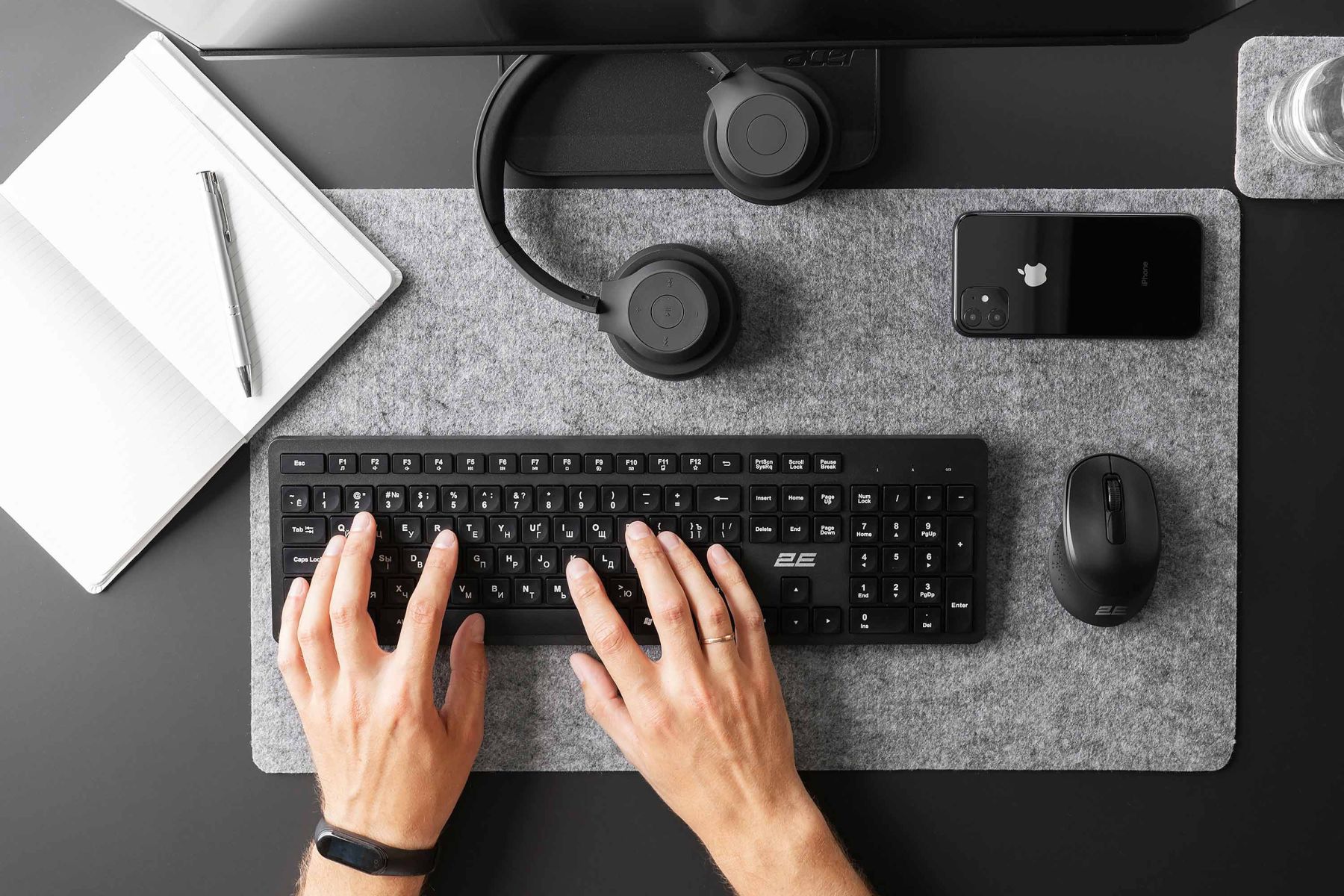 Комплект клавиатура и мышь 2E MK420 WL, EN/UK/RU, чёрный