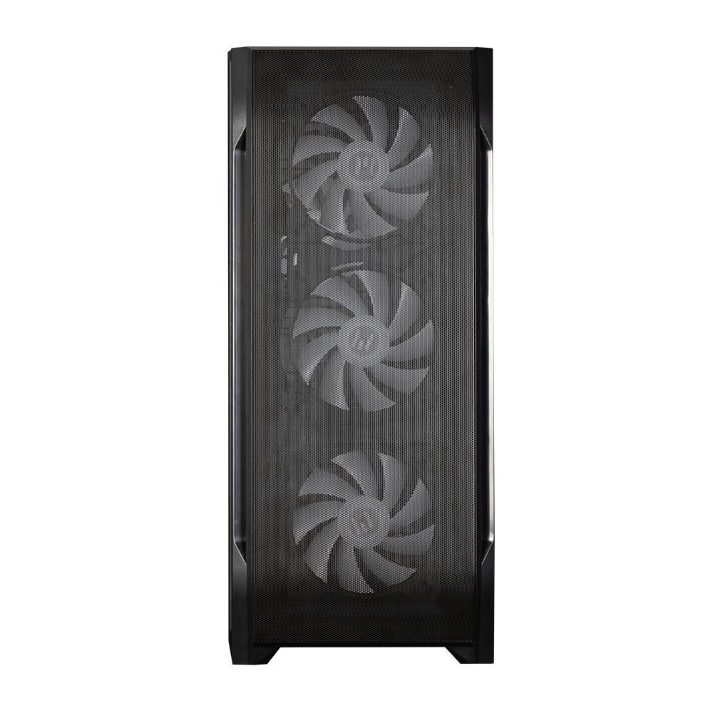 Передняя панель - металлическая сета, которая обеспечит активную циркуляцию воздушных потоков. Корпус лаконично впишется в современный интерьер. В комплекте 7 х 120мм Rainbow RGB вентиляторов. Обеспечен эффективный обдув внутреннего пространства, благодаря особенностям конструкции, а также продумана защита компонентов от пыли.