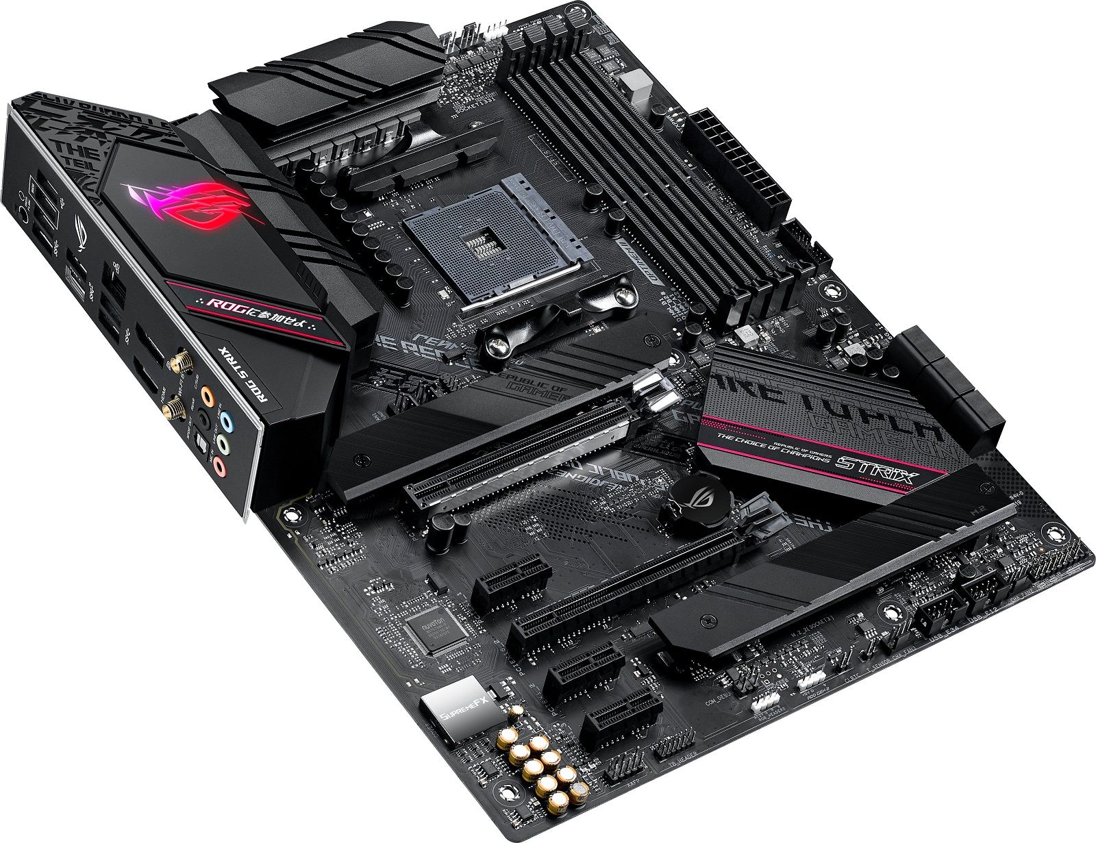 ROG Strix B550-F Gaming WiFi II embodies the ROG spirit with eye-catching aesthetics, including the next-generation distorted ROG eye logo and recessed cybertext patterning etched on the I/O shroud. These new designs move ROG Strix boldly into the future, while clearly reflecting the series' gaming roots.