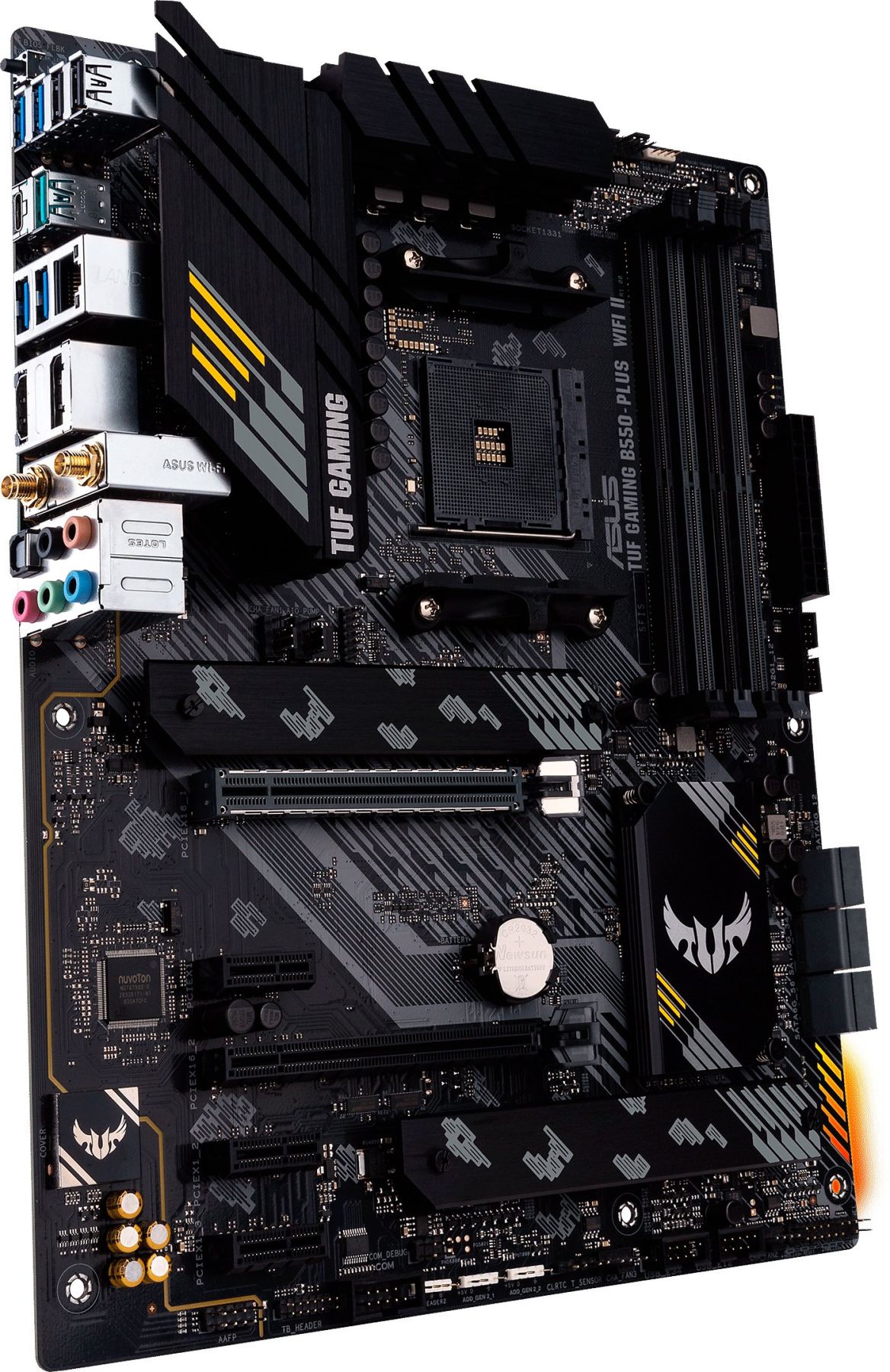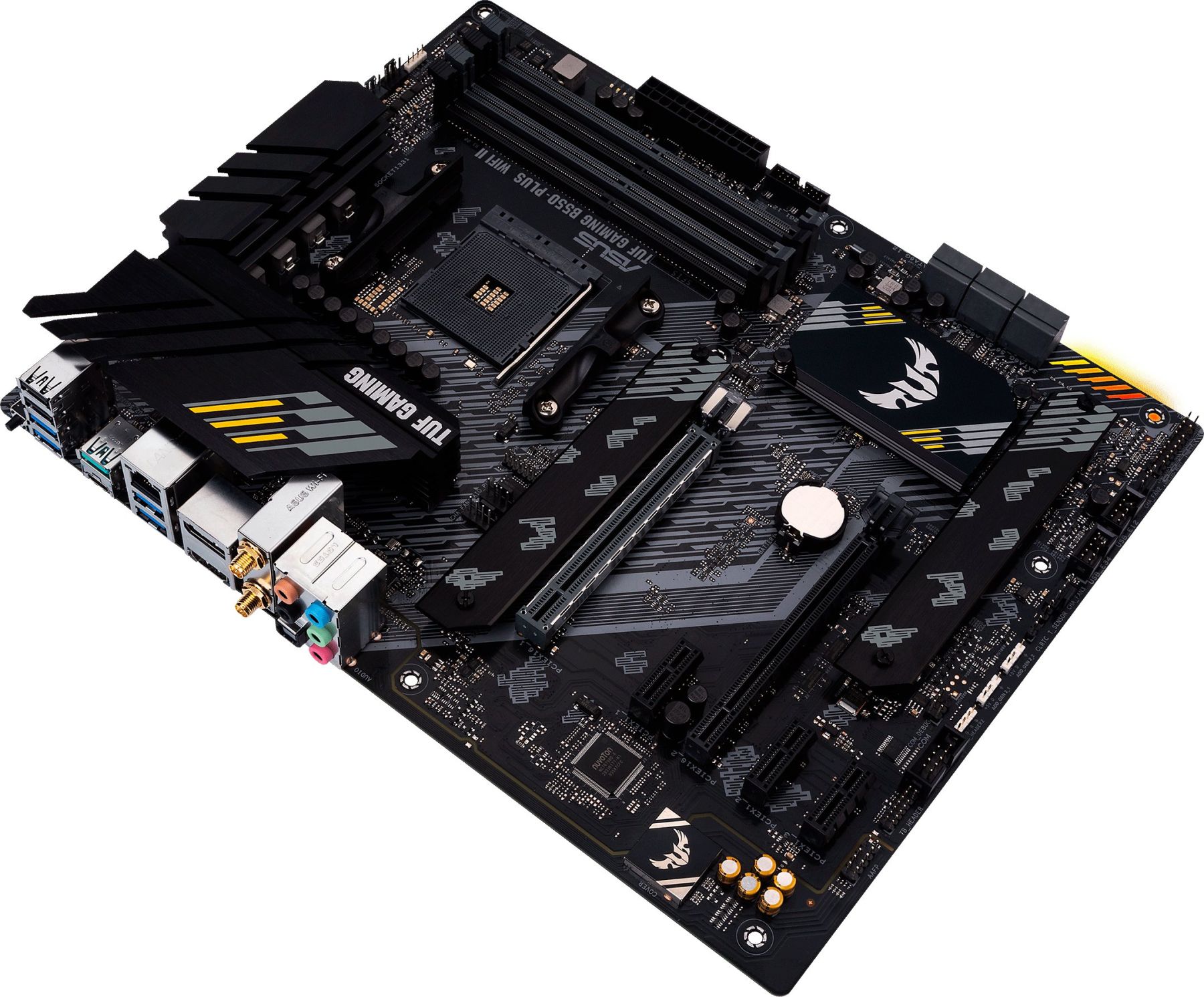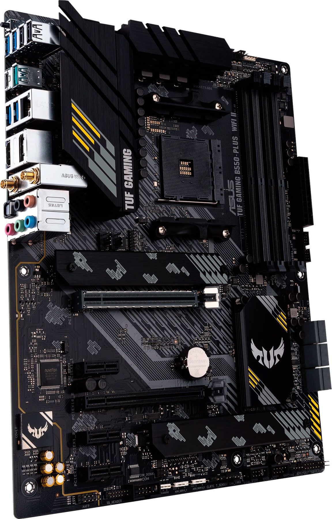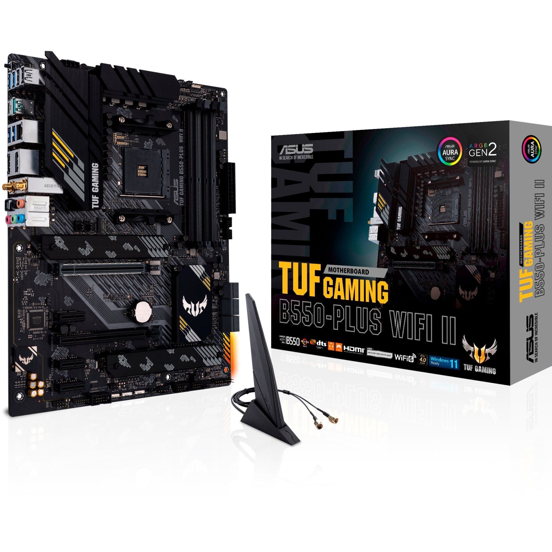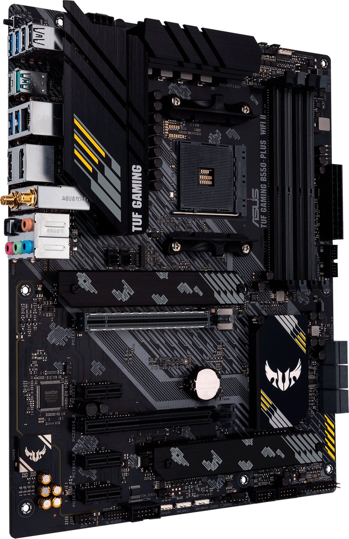 TUF GAMING B550-PLUS WIFI II provides a complete, high-performance gaming package with a long list of features to improve your experience, including ultrafast networking for smoother online gameplay, pristine audio with positional cues for FPS gaming, and onboard RGB lighting that syncs with attached accessories to help you create a personalized gaming atmosphere.