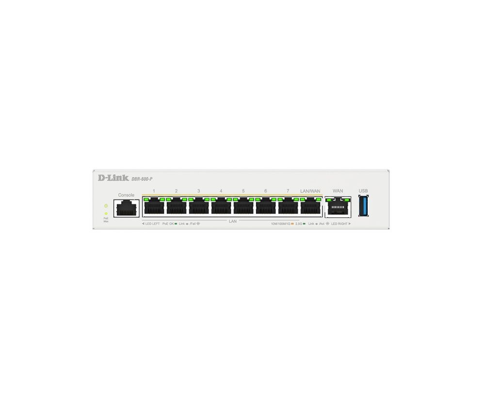 Мультисервисный Маршрутизатор , 7x2.5GE LAN PoE, 1x2.5GE LAN/WAN PoE, 1x2.5GE WAN, 1xUSB 3.0, 120Вт D-Link DBR-600-P