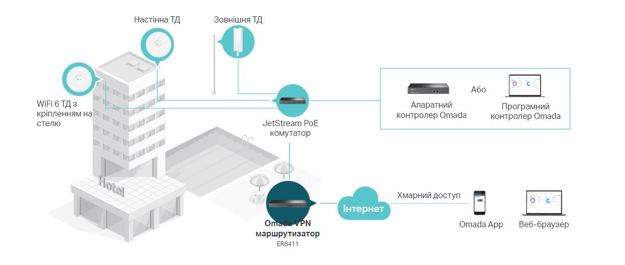 - Централизованное управление: простое и удобное управление через облако и приложение Omada.