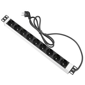 Устройство распределения электропитания MIRSAN 19", 1U, блок 9хShuko, без выключателя, вилка Shuko, алюминиевый корпус, без переключателя, кабель 1.8 м