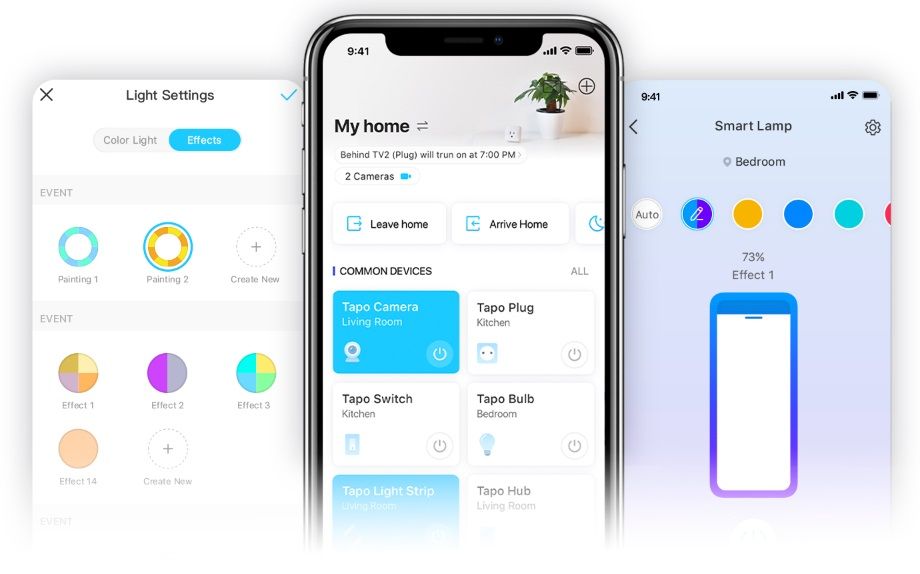 Сделайте жизнь ярче. Освещение для любых сценариев. В зависимости от настроения выберите один из 16 миллионов оттенков, включая теплый белый или холодный дневной свет. После того, как определитесь с параметрами освещения, сохраните их, создайте расписание – и готово! Уникальное освещение. Установите индивидуальные параметры, такие как цвет, время работы, яркость и теплота. Управляйте ими где и когда-либо через приложение Tapo.