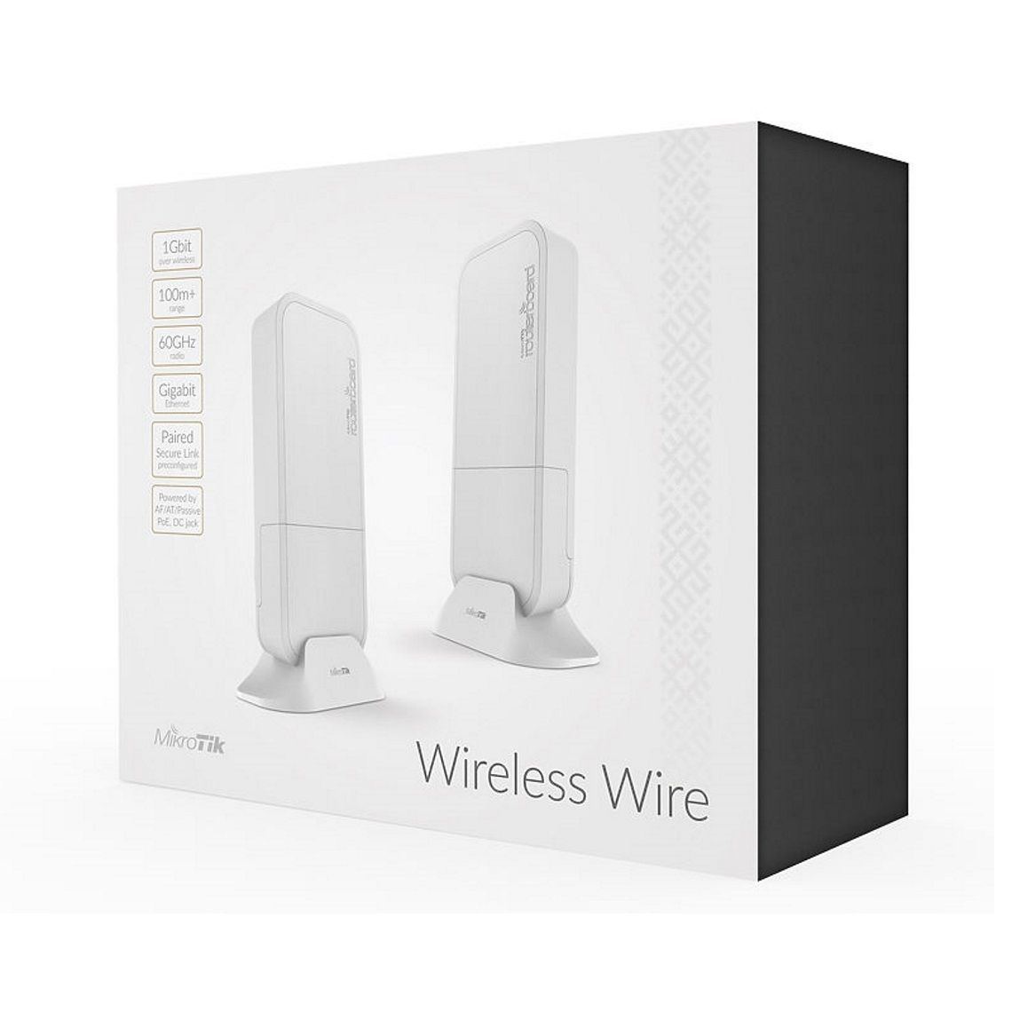 The Wireless Wire makes secure AES encrypted 60 GHz wireless link that is not affected by the crowded WiFi spectrum, offering a stable and fast link for distances of 200 meters or more. The box includes two wAP60G devices that are already paired together, a wall mounting kit, straps for pole mounting and also a pair of table stands for using the devices indoors. The link will even work through most windows, depending on their material.